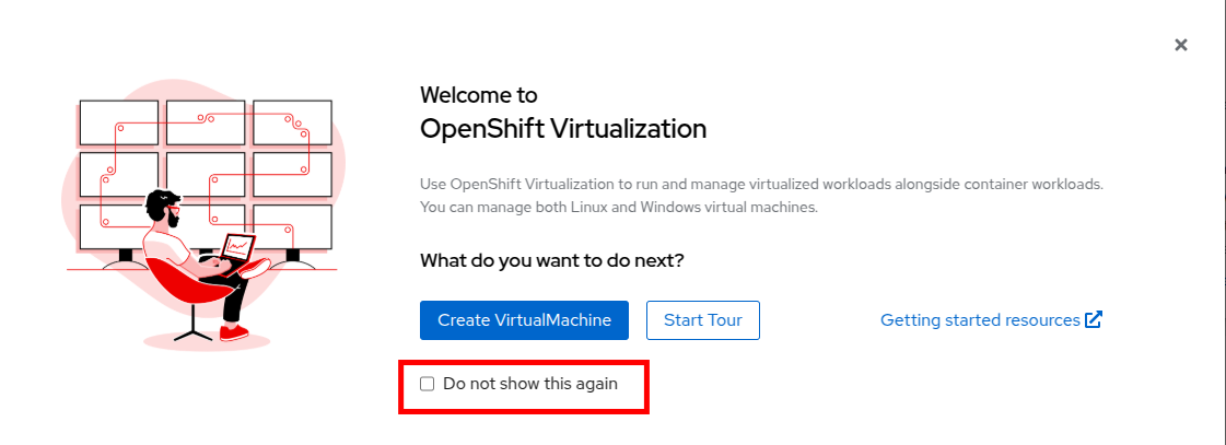 このラボの最初のセクションでは、OpenShift Virtualization における仮想マシンの作成と管理の基本について紹介します。OpenShift 4.18 から、仮想化ベースの資産を視覚化し管理しやすくする新しい仮想化パースペクティブと仮想マシンのツリービューが追加されました。UIの変更について確認した後、事前定義されたテンプレートから仮想マシンを作成するプロセス全体をウェブコンソールがどのようにガイドするかを説明します。その後、そのVMのプロパティを確認し、基本的なカスタマイズを行い、仮想マシン管理者に求められることが多いライブマイグレーションなどの操作を行います。