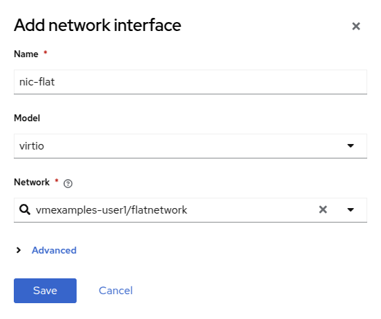 ネットワークインターフェースの追加 をクリックし、表示されるフォームに必要事項を入力して、保存 をクリックします。