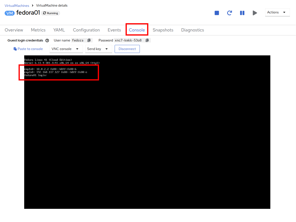 コンソールタブに切り替えて、提供されたゲスト認証情報を使用してVMにログインします。