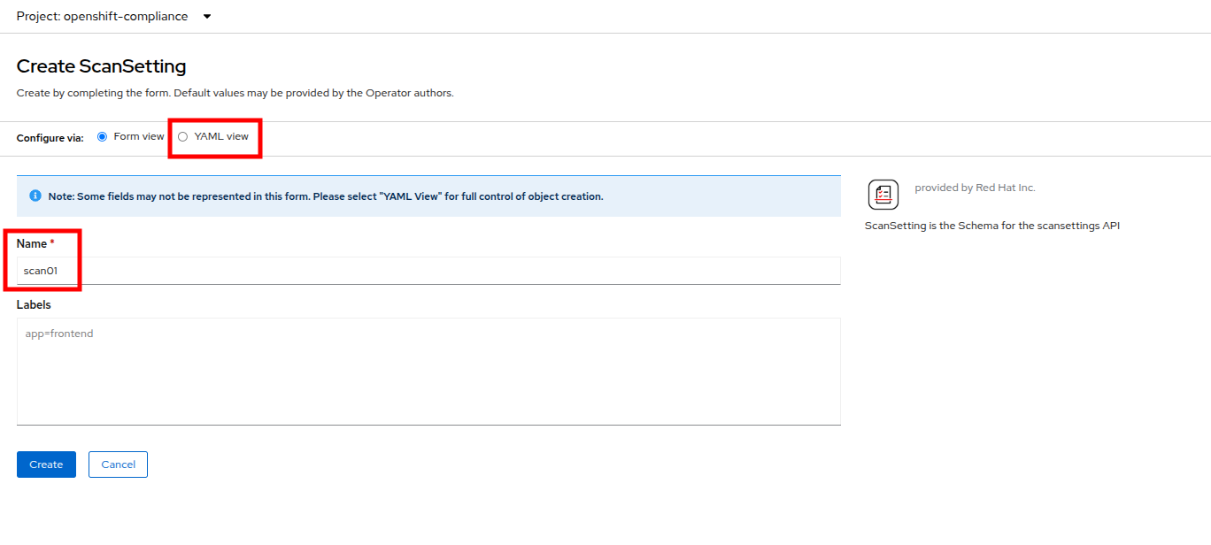 ScanSettingBinding YAMLの詳細にて、以下の変更を行います:
