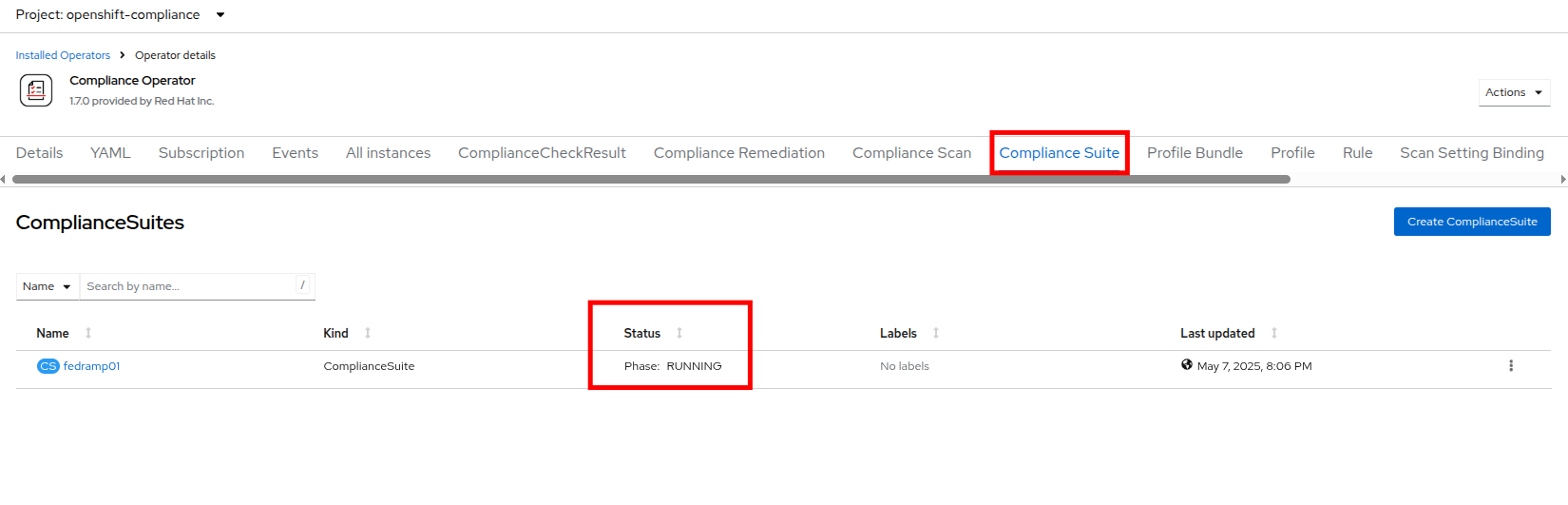 スキャンが自動的に実行されます。 これは Compliance Suite タブで確認できます。 -