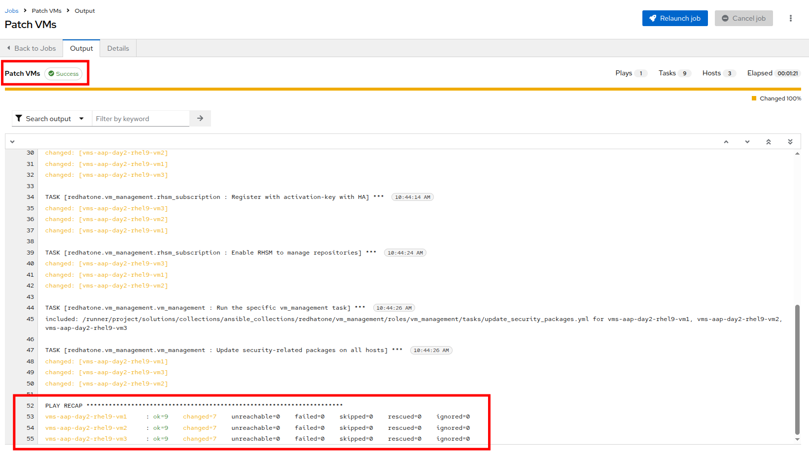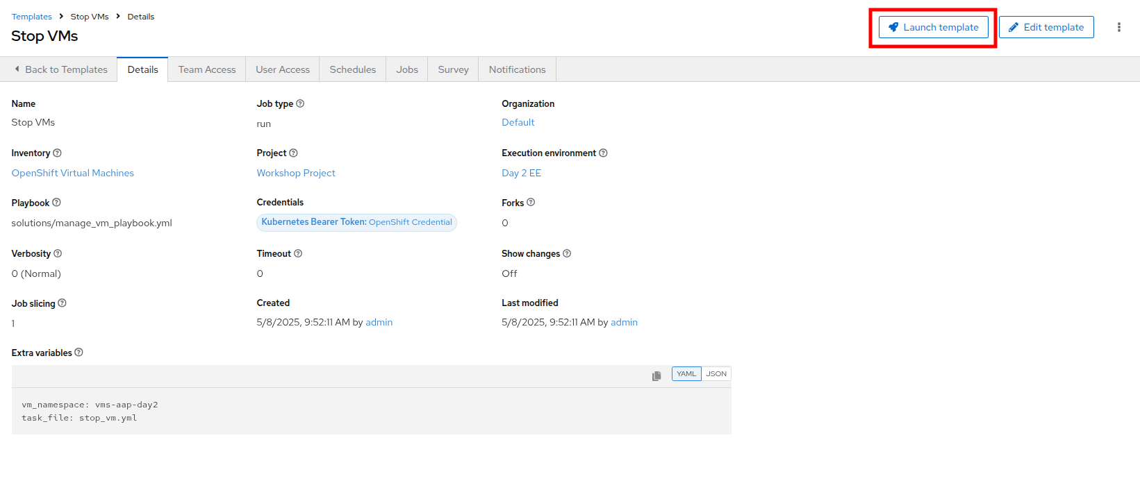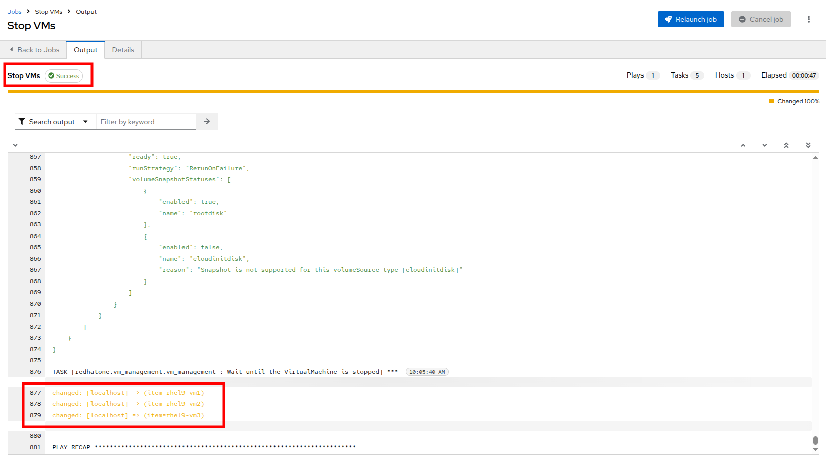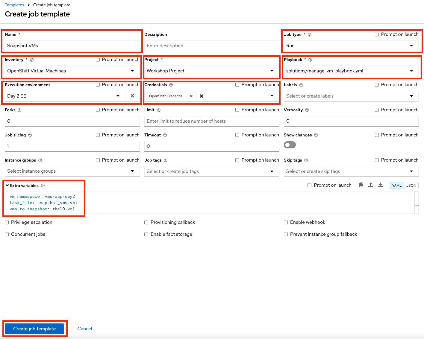 次に、AAP Web インターフェイスを介してすべての部分を接続し、ジョブテンプレートを使用してスナップショット自動化を実行します。