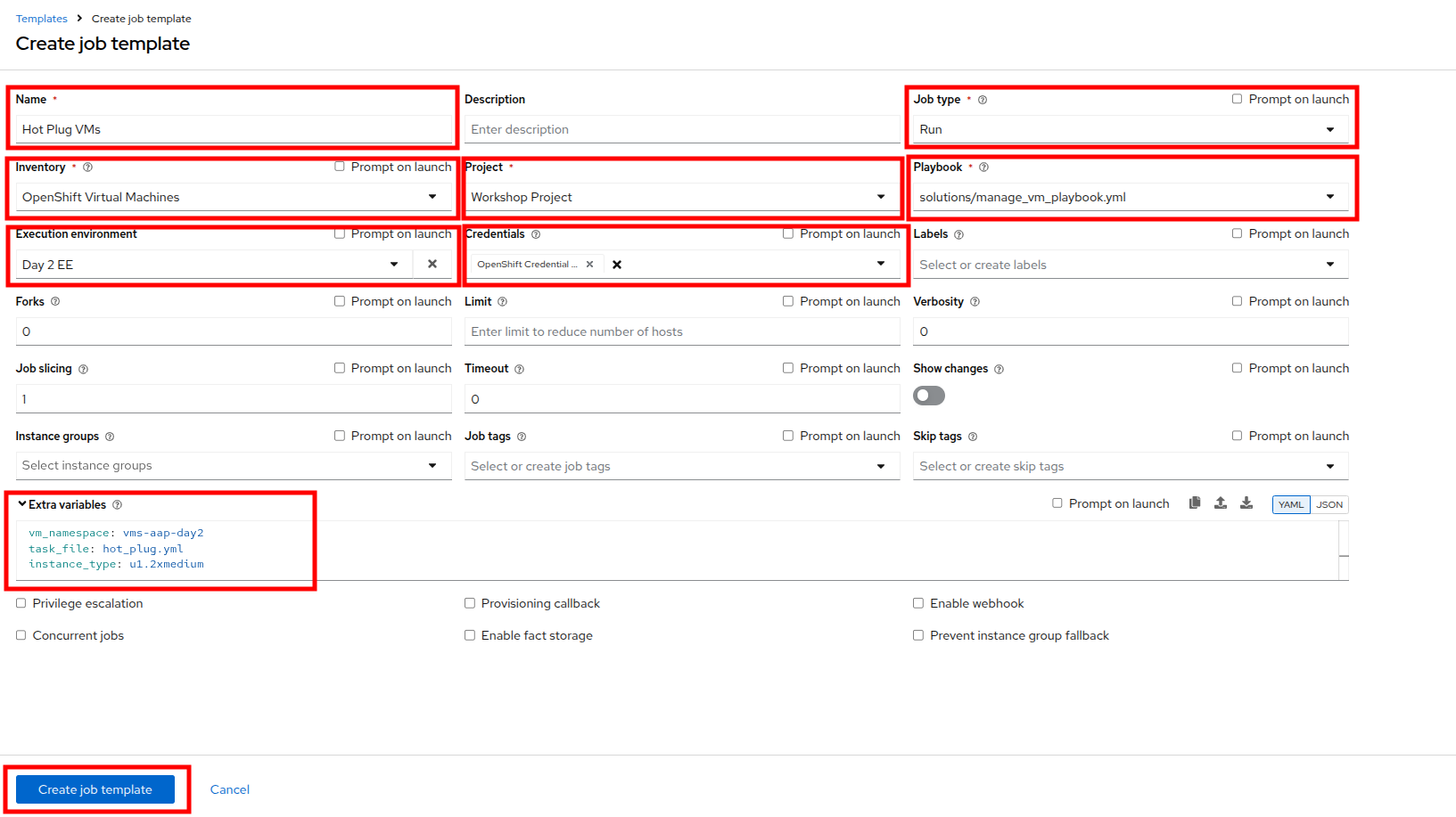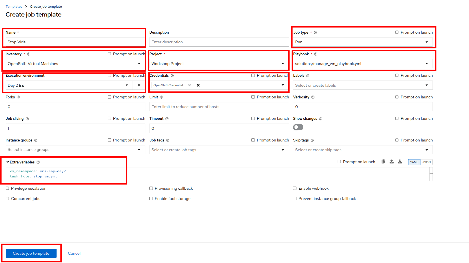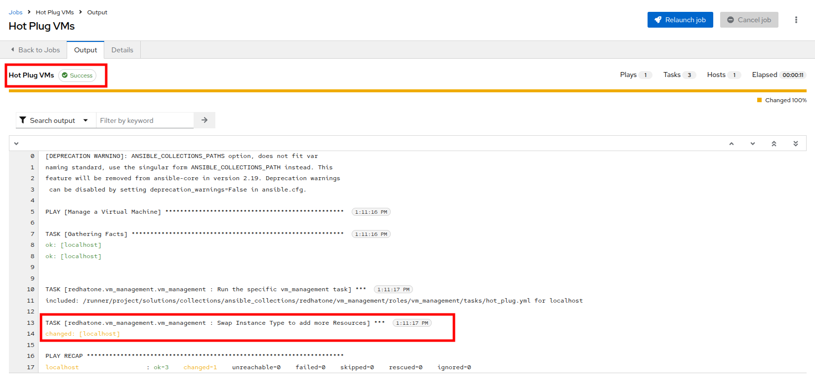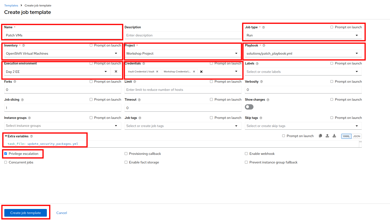 次に、AAP Web インターフェイスを介してすべての部分を接続し、ジョブテンプレートを使用してスナップショット自動化を実行します。